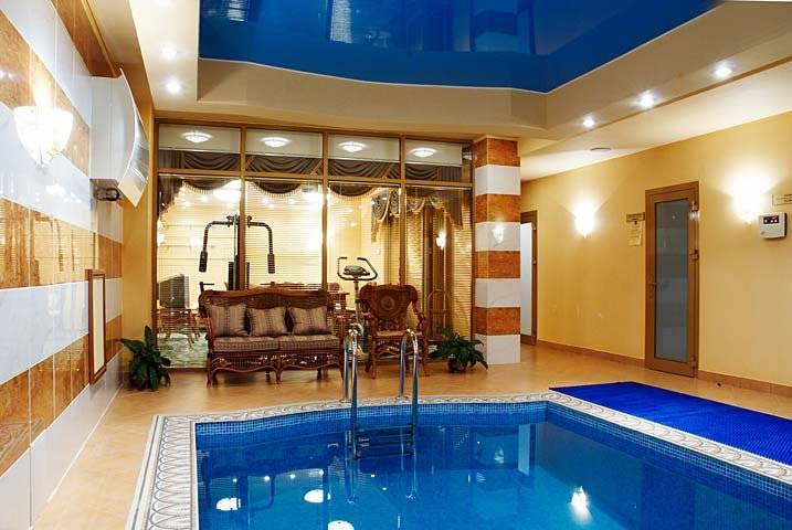 Тем, кто предпочитает сочетать релакс с активностью, придётся по вкусу компактный бассейн. В нём можно освежиться после сауны или просто насладиться плаванием - вода поддерживается в оптимальном температурном режиме для максимального комфорта.