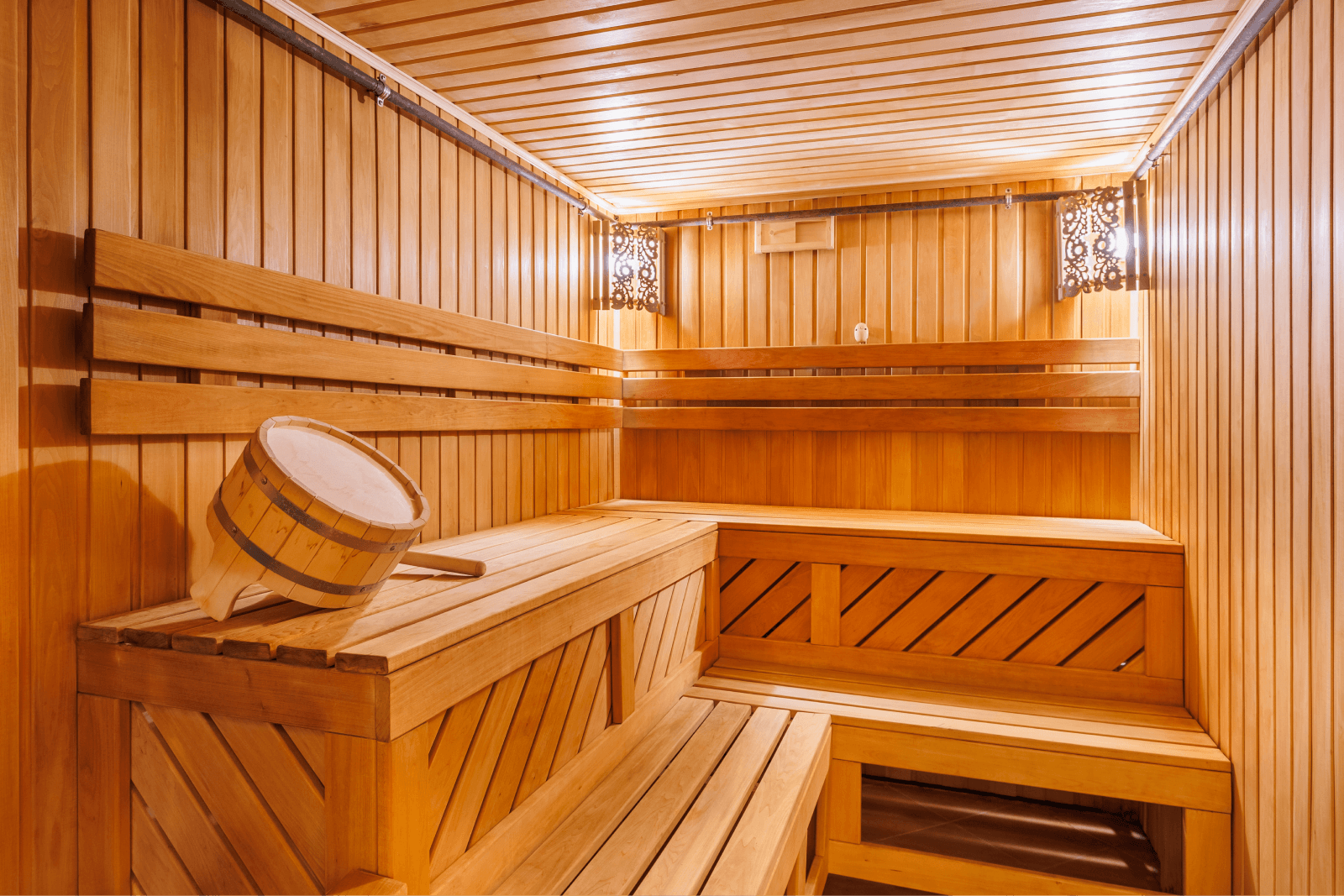 Просторная финская сауна комплекса рассчитана на компанию до восьми гостей и станет идеальным пространством для отдыха в тёплой, расслабляющей атмосфере. Мягкий пар и комфортная температура помогают снять усталость, восстановить силы и вернуть ощущение внутреннего баланса.